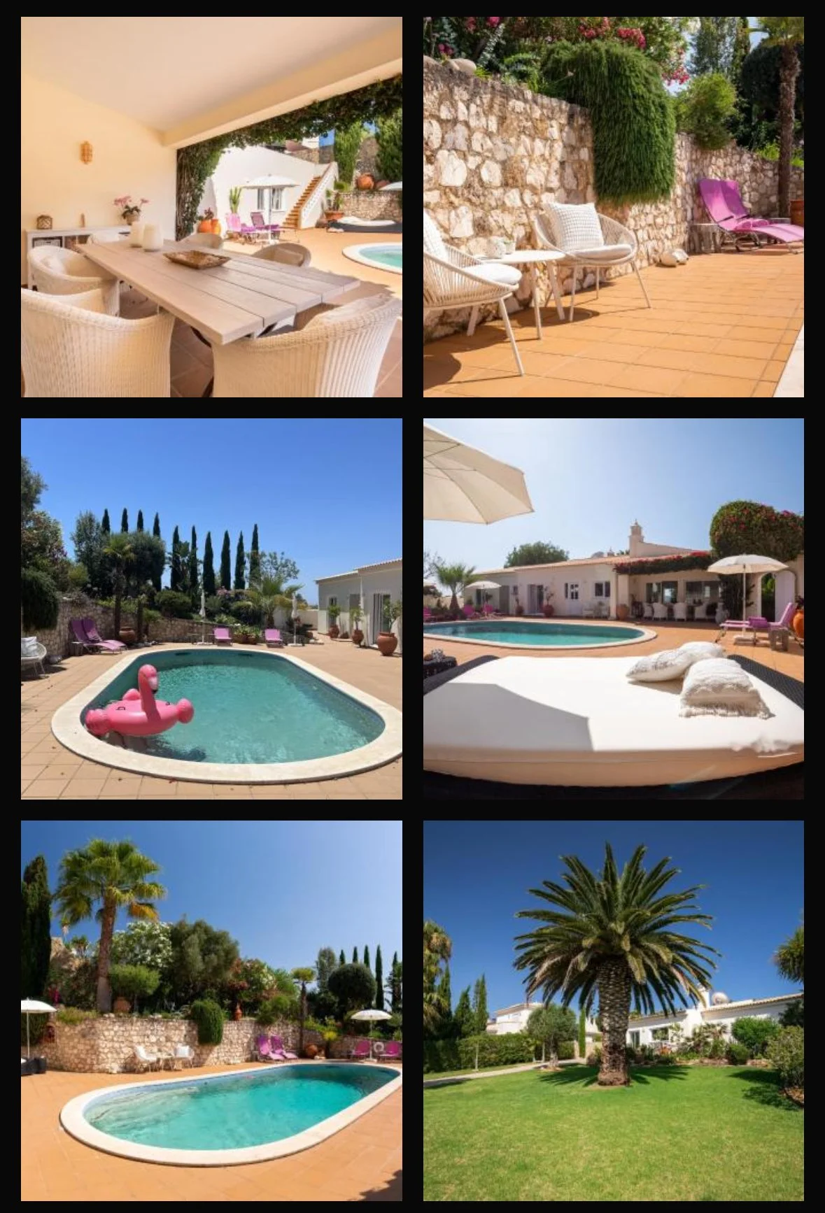 A gorgeous private outdoor pool surrounded by sun loungers and parasols perfect for lazy afternoons in the Portuguese sun. A lush tropical garden full of colour, palm trees, and flowers that make every corner feel like a postcard. A fully equipped kitchen so you can cook, feast, and make breakfast together after the night before. Terrace with pool views, ideal for morning coffees, sunset drinks, or late-night chats under the stars. Free Wi-Fi, air conditioning, satellite TV, bed linen, towels, and free private parking everything taken care of. A private entrance and garden that give the whole villa a secluded, exclusive feel.
